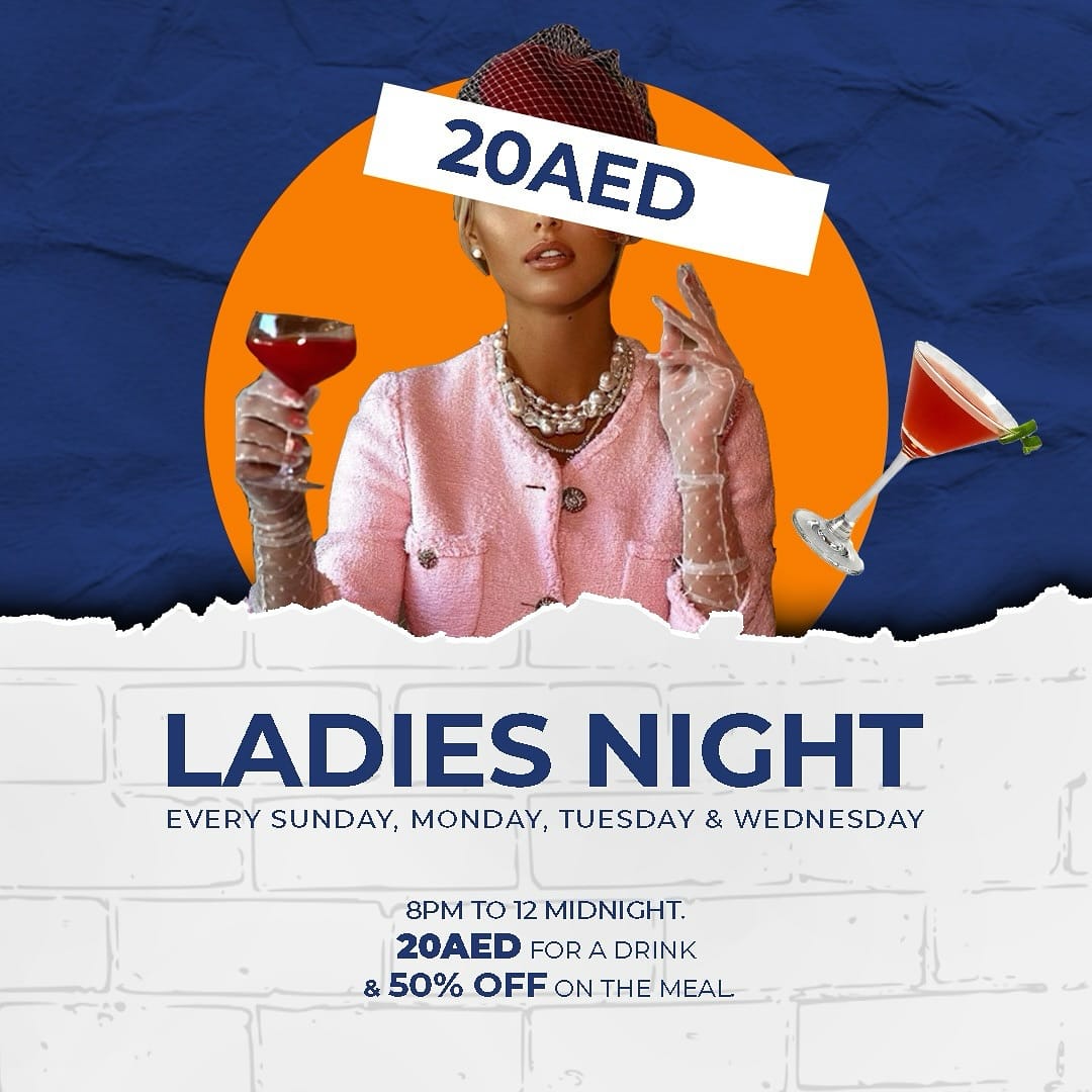 Enjoy unlimited alcoholic drinks & 25% off on the entire menu for AED 99 (Ladies) & AED 129 (Gents), every Wednesday at DIFC, 8:00pm to 11:00pm.
